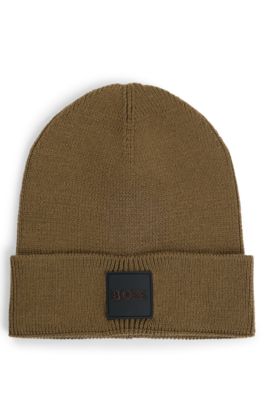 A signature beanie hat by BOSS. Knitted with a ribbed structure, this accessory has a silicone logo badge on the front.