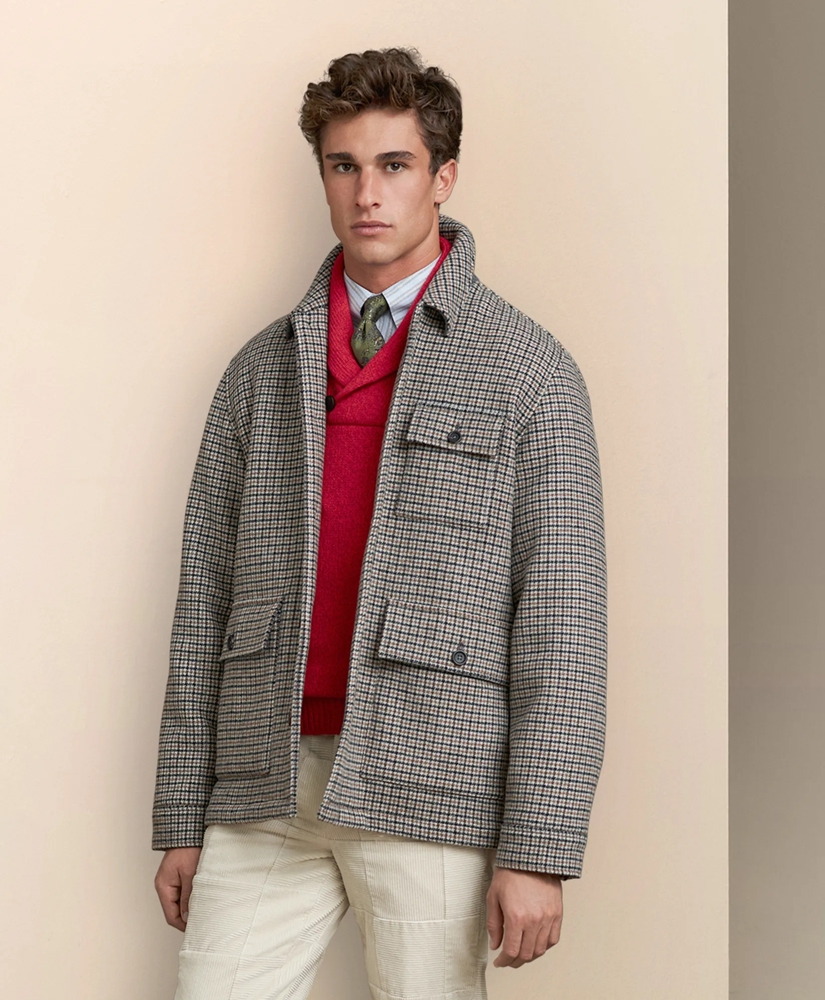 Double-faced wool lends an added layer of breathable warmth to our classic walking coat. We wove a handsome gun check pattern into the fabric and finished it with authentic horn buttons for a nod to luxurious attention to detail. It's a go-to for transitional, layered style.
