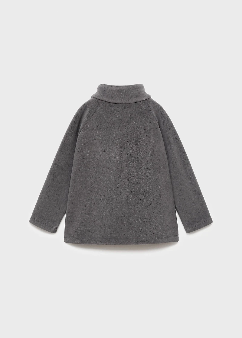 Polar fleece fabric. Straight design. Perkins neck with zipper. Long sleeve. Decorative patch.