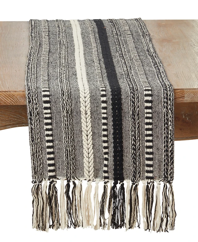 Saro Lifestyle Fringe Detail Braided Stripe Table Runner, 14" x 72"
