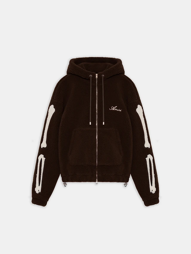 BONES FLEECE ZIP HOODIE - Dark Brown