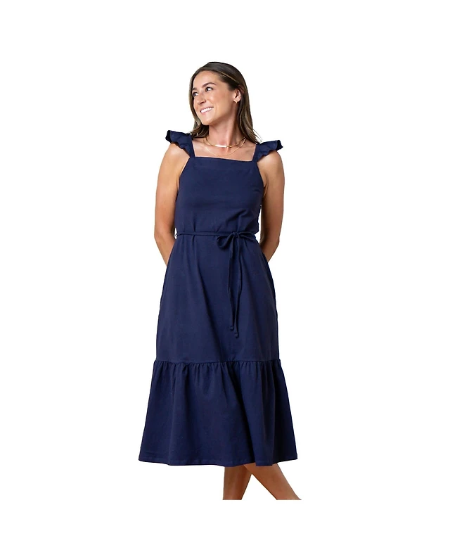 Hope & Henry Women's Organic Short Sleeve Knit Tie Midi Dress