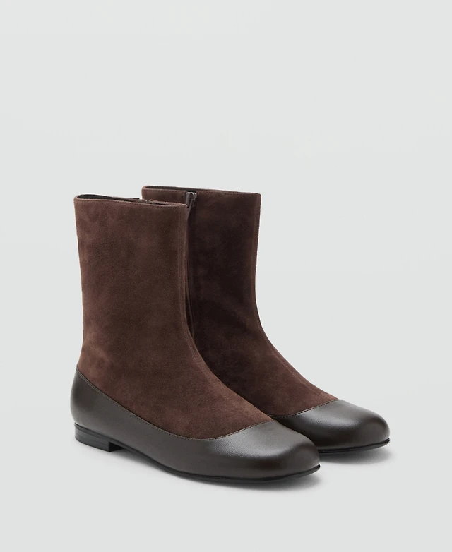 Mango Women's Block Heel Suede Leather Ankle Boots