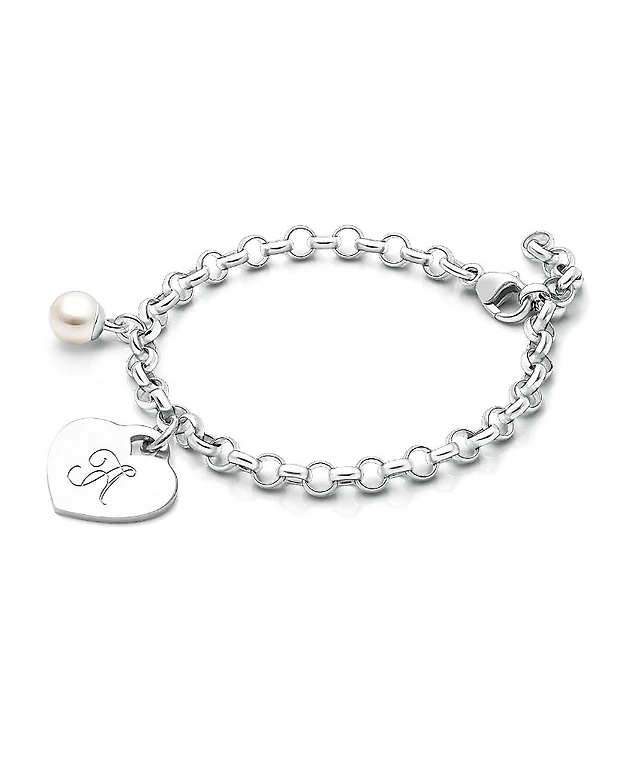 Tiny Blessings Children's Sterling Silver Dainty Heart & Engraved Initial Girls' 5.25" Bracelet
