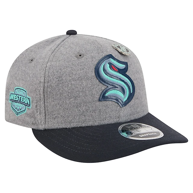 Men's New Era Gray/Deep Sea Blue Seattle Kraken Wool Pin Low Profile 9FIFTY Snapback Hat