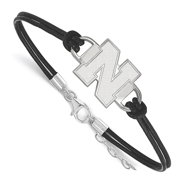 Women's Nebraska Huskers Sterling Silver Leather Bracelet
