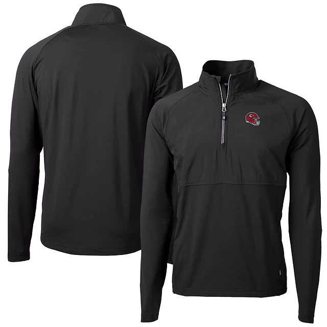 Men's Cutter & Buck Black Tampa Bay Buccaneers Helmet Adapt Eco Knit Stretch Recycled Quarter-Zip Pullover Top