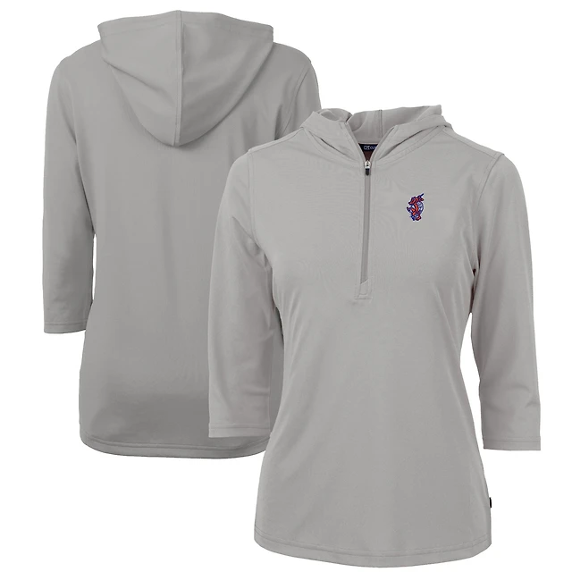 Women's Cutter & Buck Gray Florida Gators Swinging Gator DryTec Virtue Eco Pique Recycled Half-Zip Pullover Hoodie