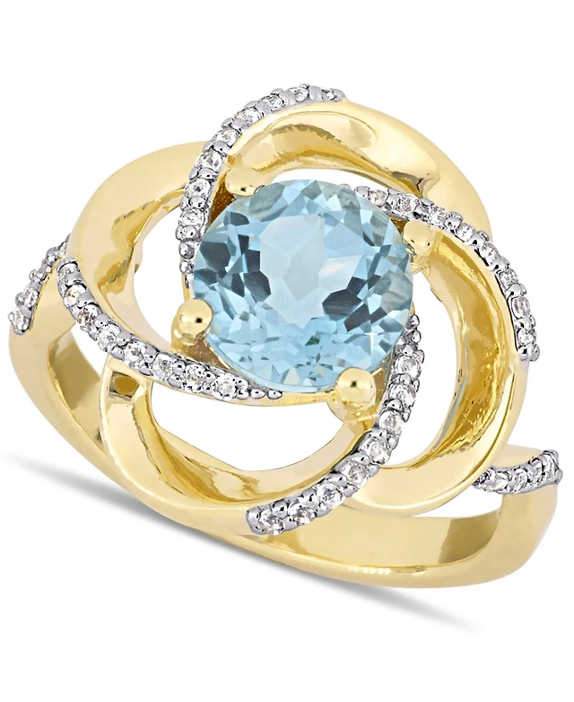Blue Topaz (2-1/3 ct. t.w.) & White (1/4 Swirl Statement Ring 18k Gold-Plated Sterling Silver