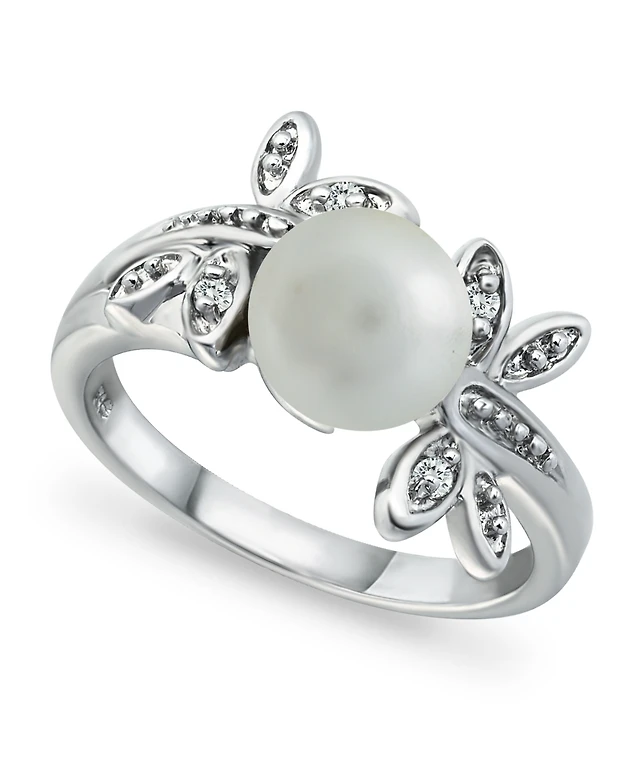 Imitation Pearl Cubic Zirconia Butterfly Ring Silver Plate