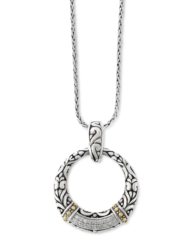 Effy Diamond Filigree Circle 18" Pendant Necklace (7/8 ct. t.w.) in Sterling Silver & 18k Gold