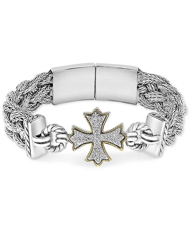 Effy Diamond Cross Woven Bracelet (1/3 ct. t.w.) in Sterling Silver & 18k Gold