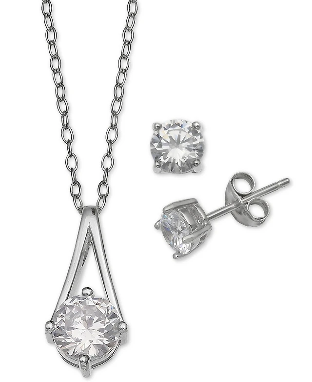 Giani Bernini 2-Pc. Set Cubic Zirconia Pendant Necklace and Stud Earrings in Sterling Silver, Created for Macy's