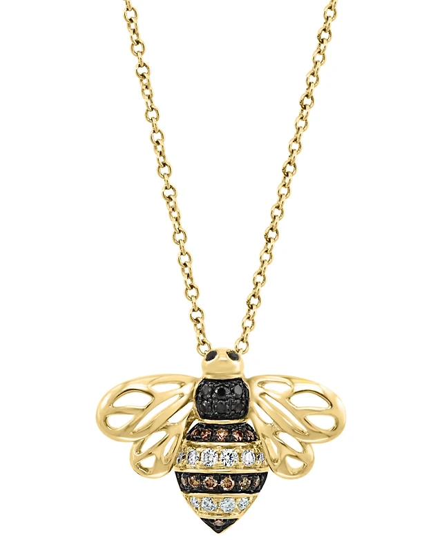 Le Vian Diamond (1/8 ct. t.w.) & Black Enamel Bee 18" Pendant Necklace in 14k Gold