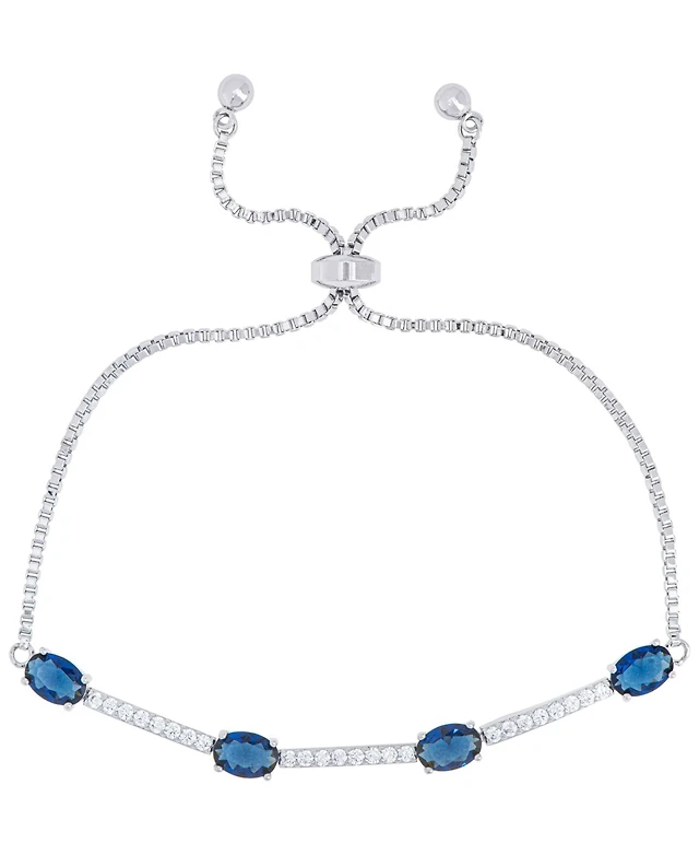 Lab Created Sapphire and Cubic Zirconia Oval Adjustable Bolo Bracelet in Fine Silver Plate